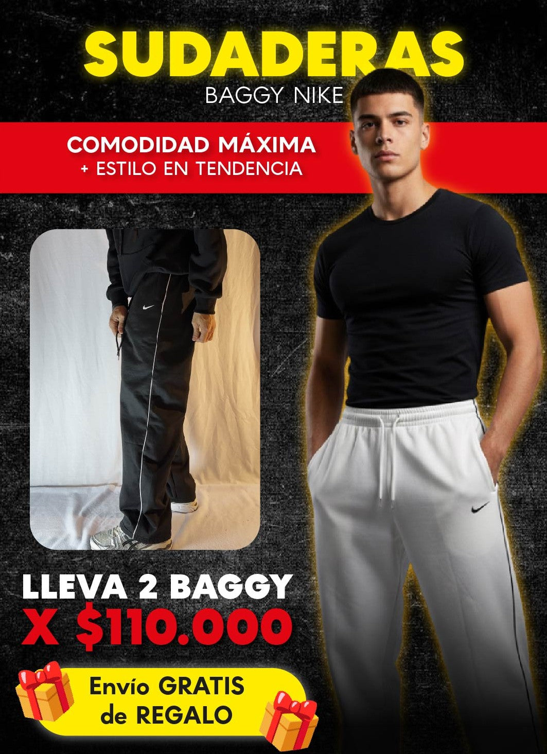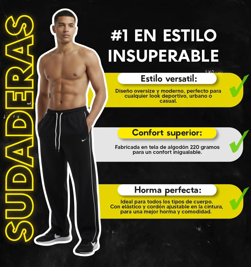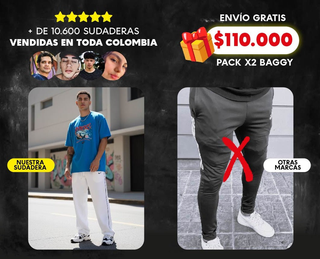 Sudadera/ Jogger en algodón, con bolsillos laterales y de estilo Baggy oversized, cintura ajustable y bota recta.