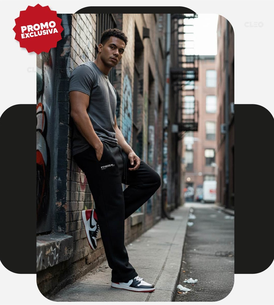 Sudadera/ Jogger en algodón, con bolsillos laterales y de estilo Baggy oversized, cintura ajustable y bota recta.